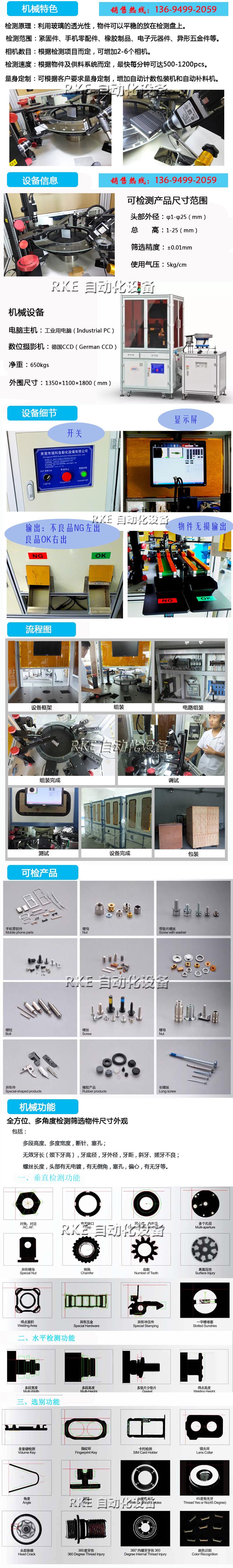 東莞市瑞科自動化設(shè)備有限公司開發(fā)光學(xué)影像篩選設(shè)備。在操作中,零件通過一個振動碗加載到旋轉(zhuǎn)臺上,隨后零件在旋轉(zhuǎn)臺上旋轉(zhuǎn)經(jīng)過多個成像站點,以檢測其頂部缺陷、底部缺陷、內(nèi)部缺陷和內(nèi)部缺陷。該系統(tǒng)使用多個視覺檢測站點對小零件進行全方位的檢查,如檢查墊圈、螺釘和橡膠墊等產(chǎn)品。
